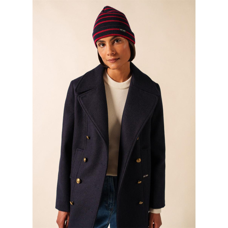 Plongez dans l’esprit maritime avec ce bonnet de quart rayé en pure laine vierge, décliné dans un élégant coloris Navy / Médoc. Tricoté avec une laine vierge de haute qualité, il offre chaleur, résistance et confort naturel.