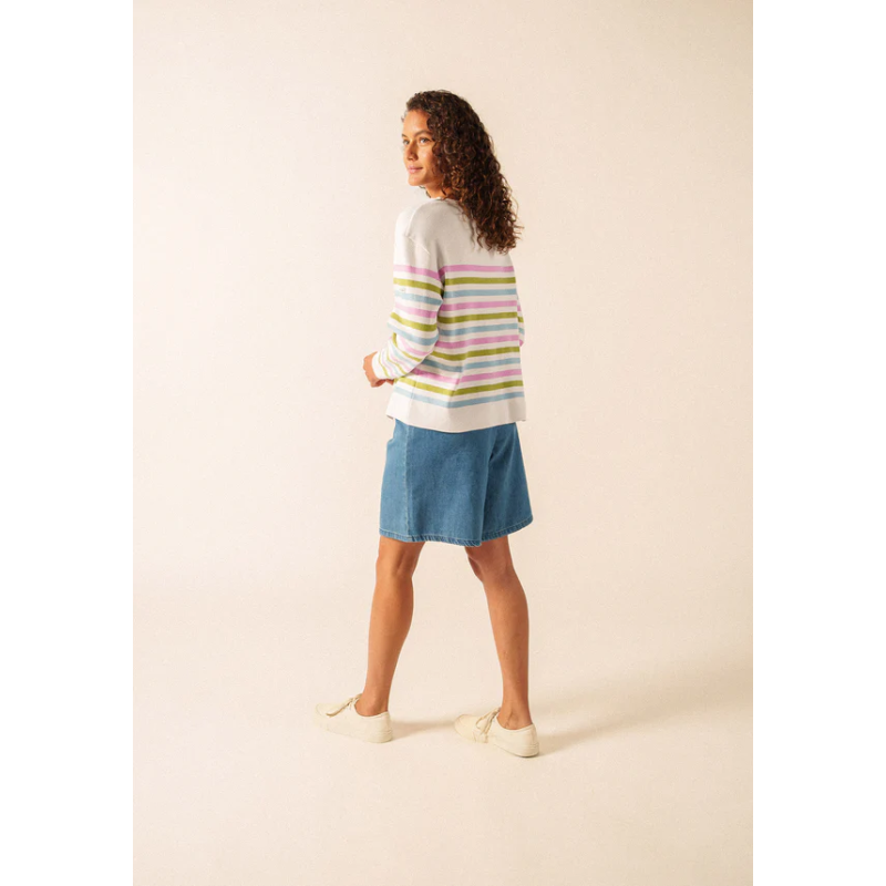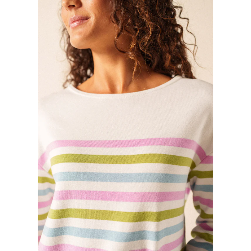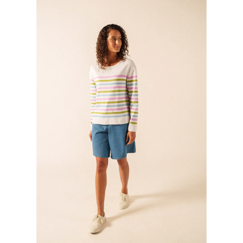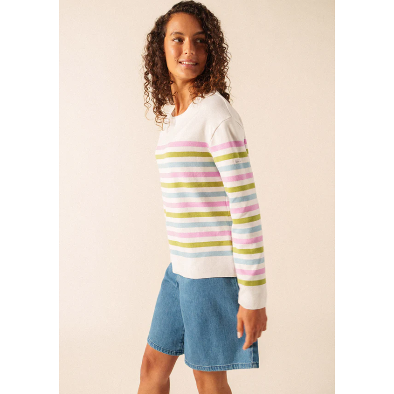 Inspiré de nos iconiques marinières, le pull Écrins est un pull rayé confectionné dans nos Ateliers. Tricoté en coton 100%, il offre une légèreté, un confort et une chaleur idéals pour attendre l'arrivée des beaux jours. Avec sa côte 1x1, son col rond, ses manches longues et ses revers au bas des manches, il allie élégance et simplicité. Le logo appliqué au milieu de la manche gauche et sa coupe droite viennent compléter cette pièce incontournable pour les amateurs de marinières et de style intemporel.