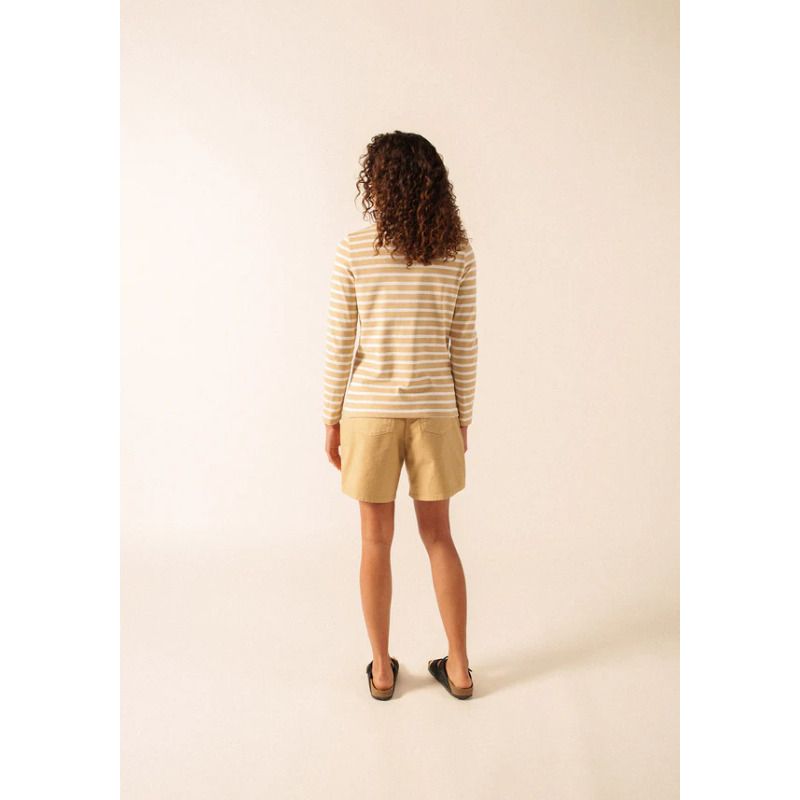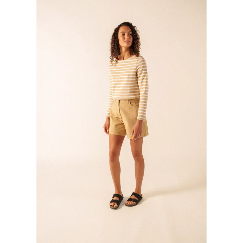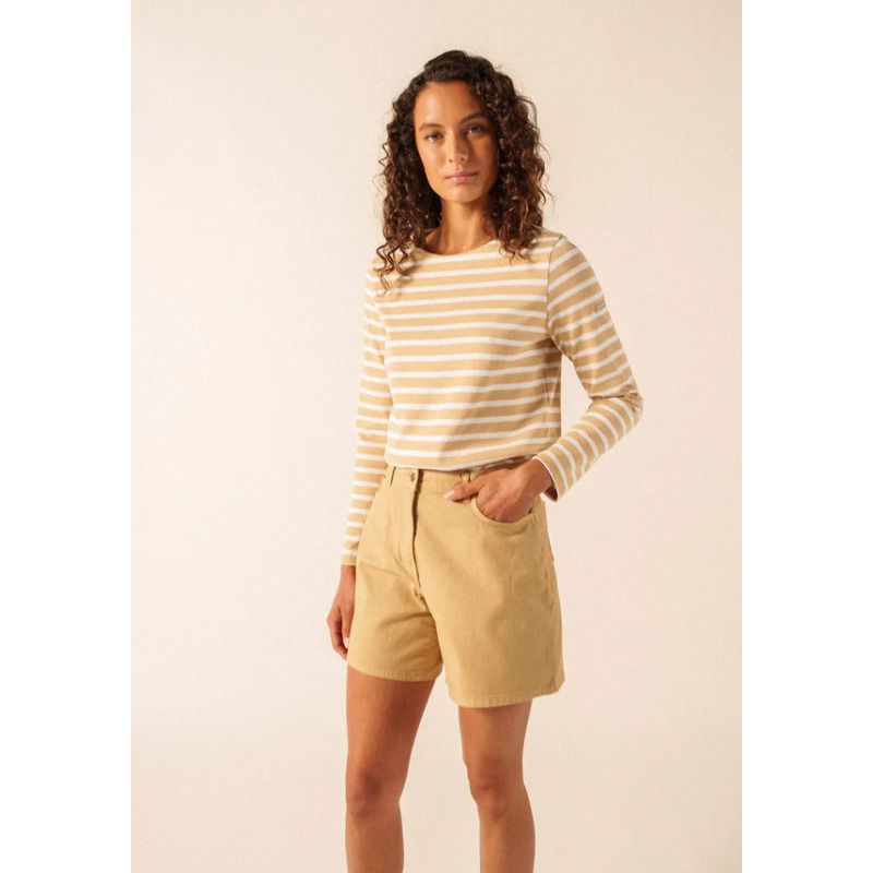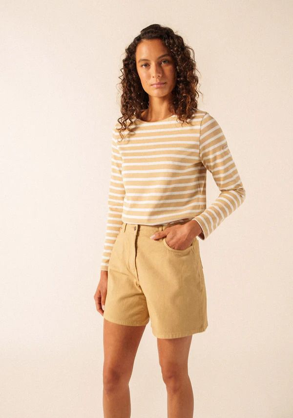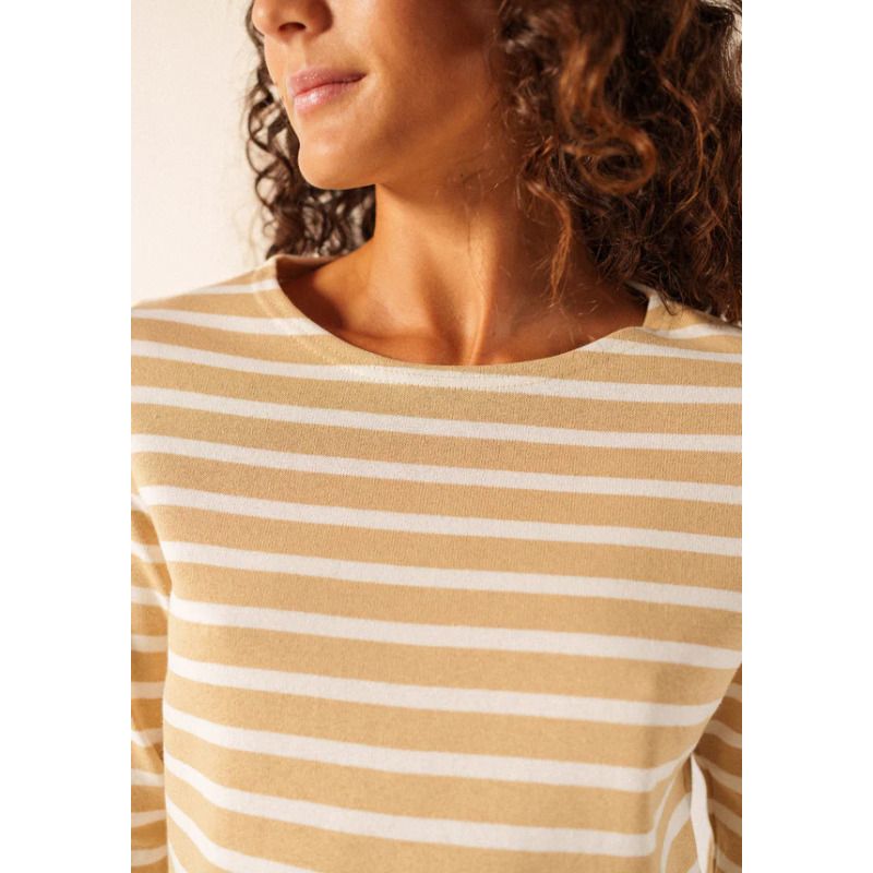 La marinière Méridame se distingue par son coton cardé 100%, une matière plus épaisse et authentique que celle de la marinière Minquidame en coton léger. Cette marinière femme est la version féminine de la Méridien, pensée pour s’adapter aux morphologies féminines.