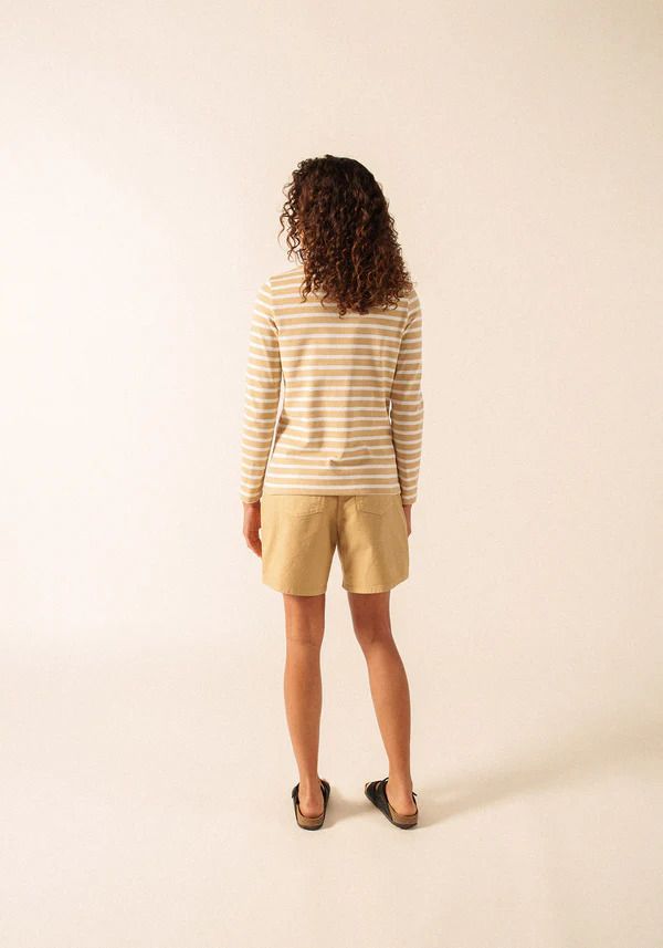 Sa coupe légèrement marquée à la taille et son bas évasé offrent une silhouette élégante et confortable. Confectionnée en jersey lourd, cette marinière manches longues est idéale pour les inter-saisons ou à porter en hiver sous une veste en laine.