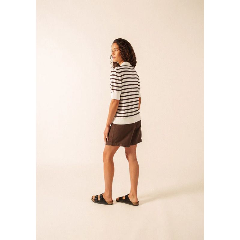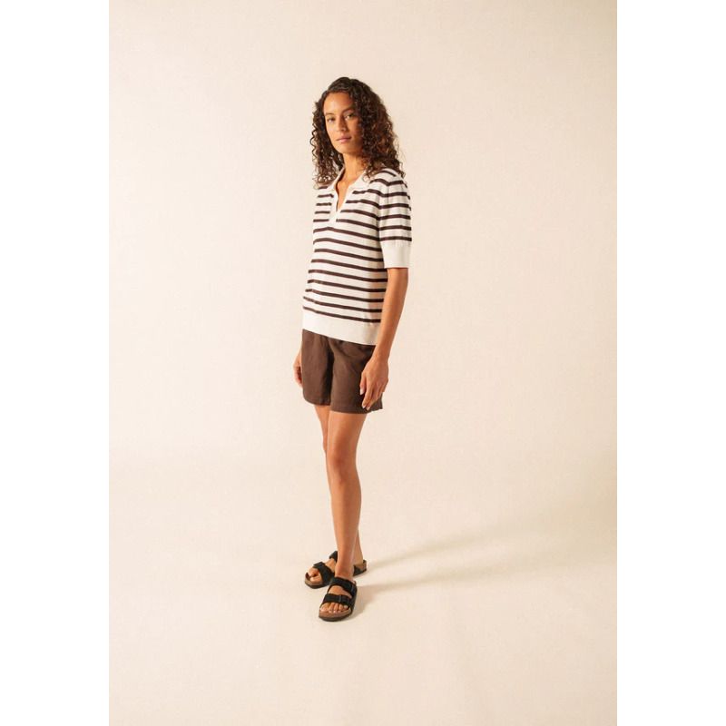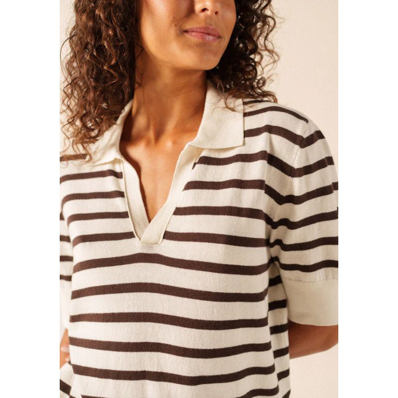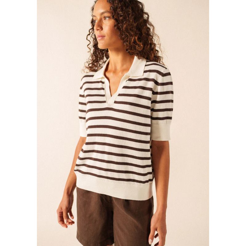 Pour les journées de printemps où le soleil brille mais qu’une brise se fait sentir, le polo en maille rayé Coimbra est idéal. Son col polo ouvert en V et ses rayures marines lui confèrent un style décontracté et facile à porter.