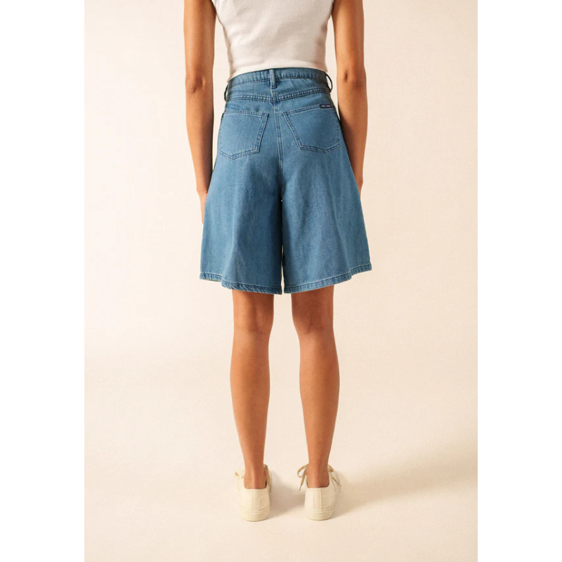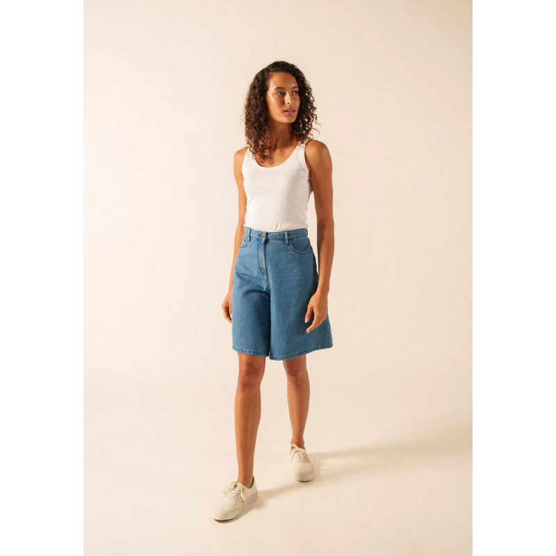 Pour une douce journée de printemps en ville ou un pique-nique improvisé, le bermuda esprit jupe-culotte Manon vous accompagne avec style et aisance. Confectionné en denim et en coton 100%, il allie confort et tenue. Sa coupe droite et ample joue avec les volumes pour offrir l’allure d’une jupe tout en conservant la liberté de mouvement d’un bermuda. Pratique au quotidien, il dispose de 5 poches et d’une braguette zippée pour un porté facile.
