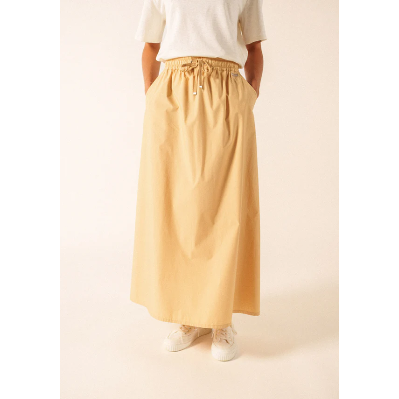 Pour une balade en ville ou une flânerie estivale, la jupe longue Albane est idéale au quotidien. Confectionnée en popeline légère de coton 100%, elle offre confort et légèreté. Sa coupe confort assure une grande liberté de mouvement, tandis que la taille élastiquée avec cordon permet un ajustement facile. Pratique et discrète, la poche italienne complète cette jupe longue au style simple et fluide, parfaite pour un look estival.