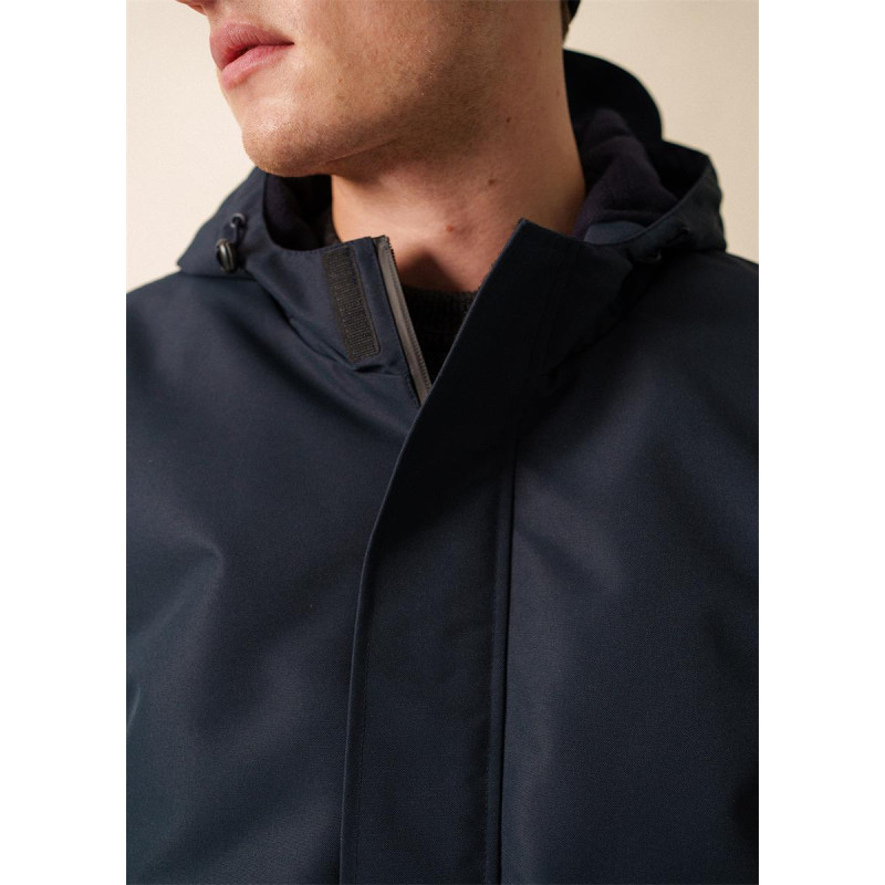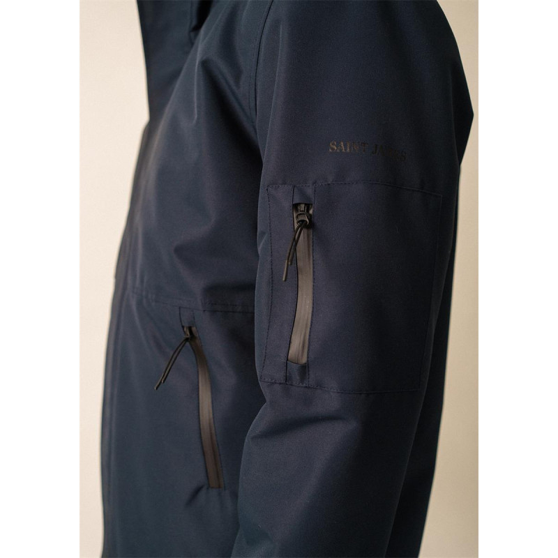 Cette parka en toile technique est idéale pour affronter les journées froides et humides avec style et efficacité. Conçue avec un col montant et des manches longues, elle offre une protection optimale contre le vent et les intempéries. Sa doublure en polaire, présente dans le corps comme dans la capuche, garantit une isolation thermique agréable. Grâce à ses coutures étanches et à sa fermeture zippée cachée sous patte, cette parka empêche l’humidité de s’infiltrer. Fonctionnelle, elle est équipée de poches zippées étanches à l’extérieur et de poches intérieures zippées pour garder vos effets personnels en sécurité. Sa coupe droite assure un confort optimal, tandis que le logo SAINT JAMES apposé sur la manche gauche signe une pièce à la fois technique et élégante. Confectionnée en 100 % polyester, elle allie durabilité et performance.