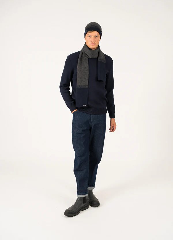 Inspirée de notre iconique pull Bretagne, l'écharpe Bretagne est une écharpe bicolore en laine. Comme le pull dont elle est inspirée, elle possède un joli dégradé au dessus du revers. Tricotée dans nos Ateliers, elle est 100% laine et faite en côte 1x1, la maille iconique de nos pulls marins.