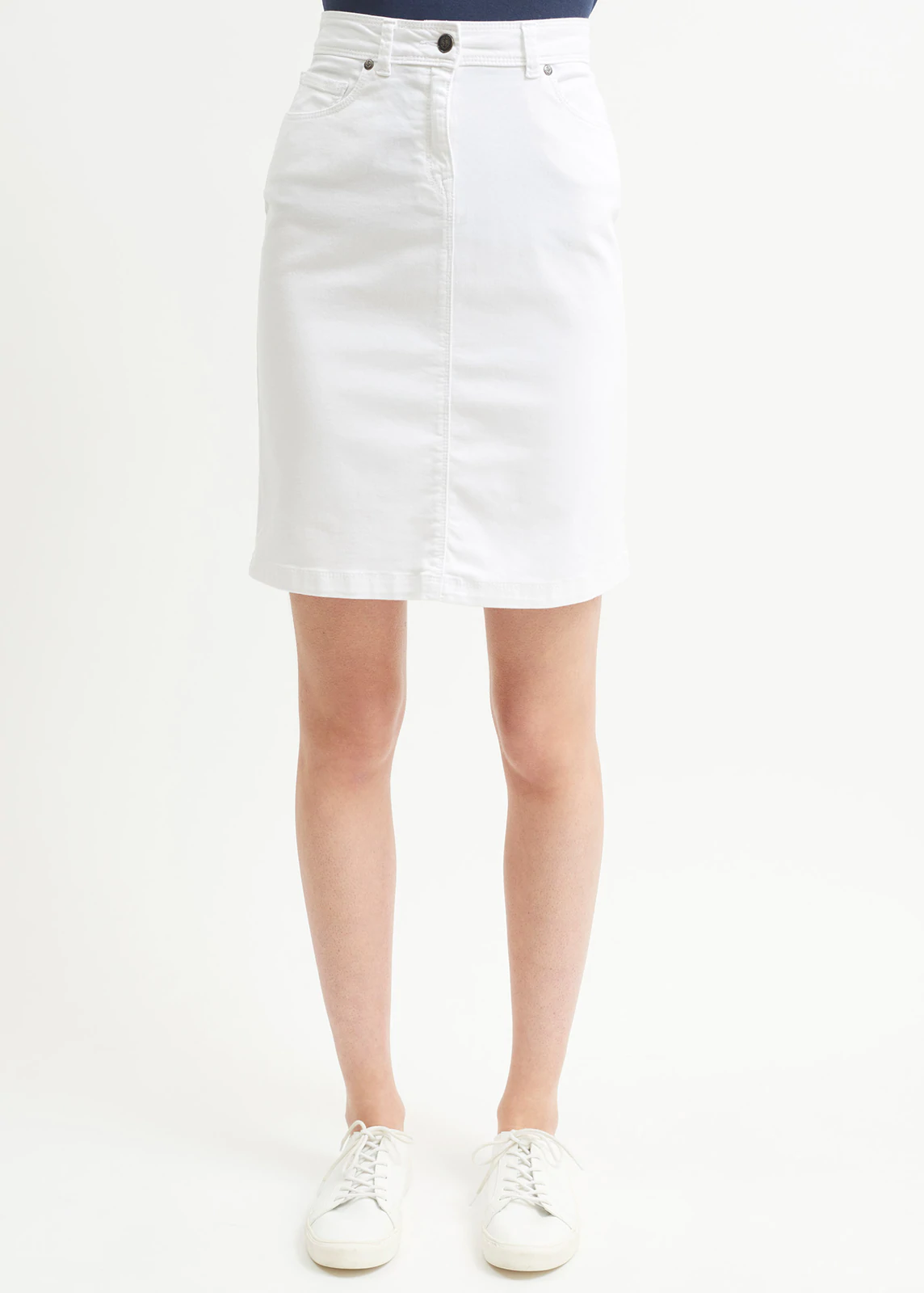 La jupe droite est un incontournable de la garde-robe, avec les propriétés « stretch », le modèle Elfy couleur est agréable à porter et facile à associer. Au rythme des associations, elle s’affirme dans la sobriété et la féminité.