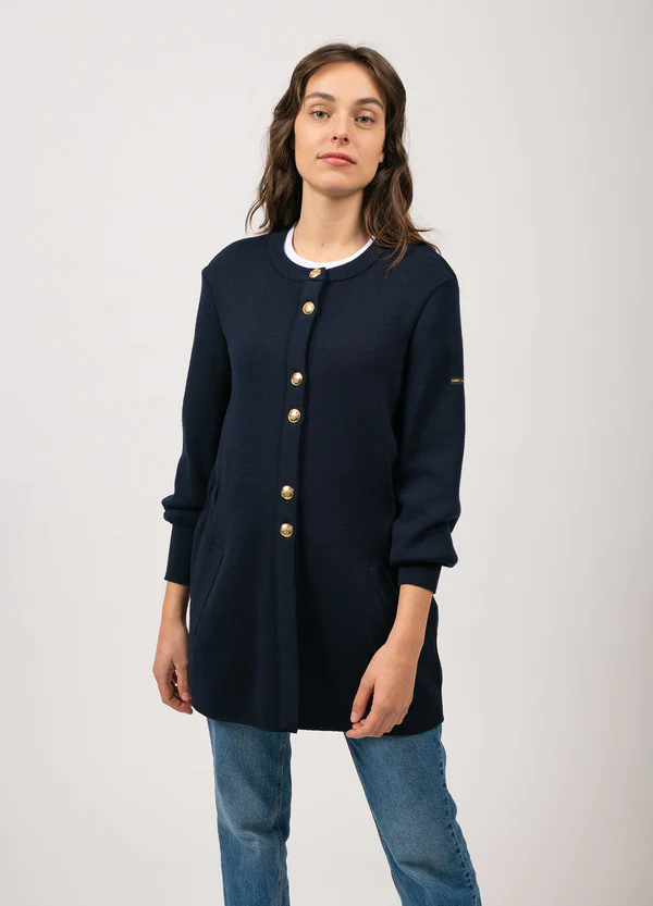 Réédition d'une pièce créée en 1993, la veste Vésubie Réedit propose une version plus moderne et plus actuelle. Tout comme l'ancien modèle, la Vésubie Réedit est confectionnée en point de Rome et en 100% laine, dans nos Ateliers normands. Elle conserve également sa taille élastiquée ainsi que ses boutons groupés par 2. Pour sa réédition, de nouveaux boutons blason doré remplacent les anciens boutons à ancre. Une pièce directement puisée dans notre héritage marin, qui témoigne du savoir-faire de SAINT JAMES.