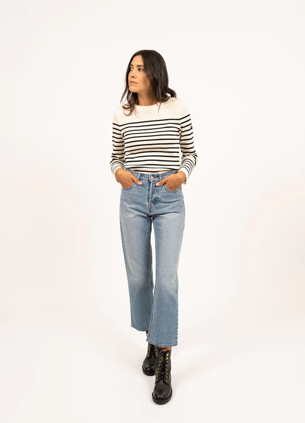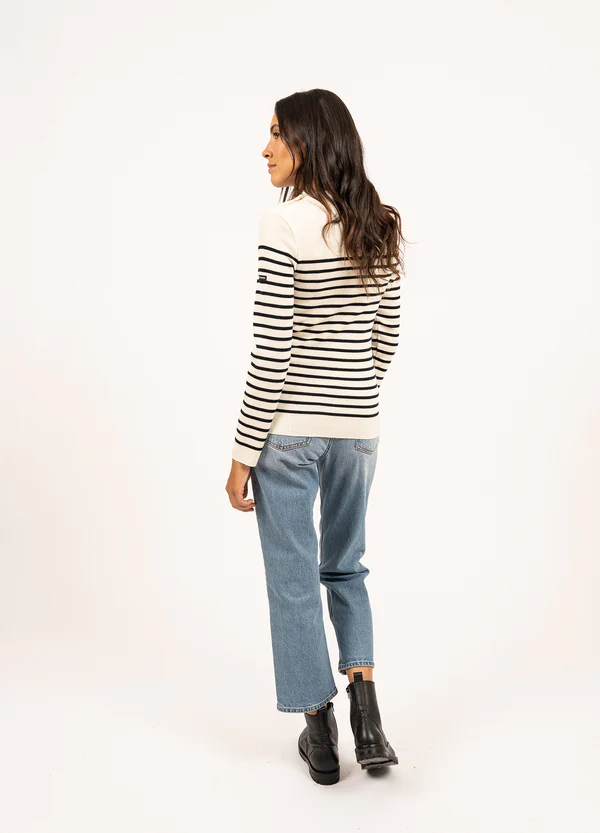 Le pull marin pour femme. Celui qui conserve authenticité et esthétique par sa coupe ajustée.