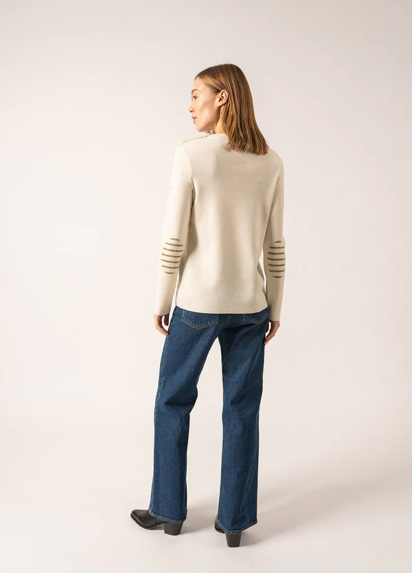 Pull marin uni Brégançon Ecume/Doré - Saint James
