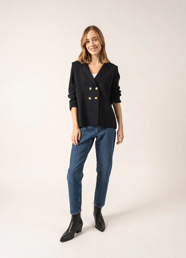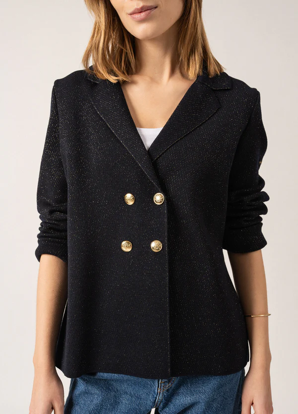 Intemporelle, notre désormais iconique veste Charente se décline désormais en version lurex. Mêlant notre héritage marin et l'élégance du blazer, le modèle Charente Lurex ajoute une touche de lumière et d'originalité avec son effet pailleté. Une pièce idéale pour vos tenues de fêtes, à porter également toute l'année, avec un jean classique.