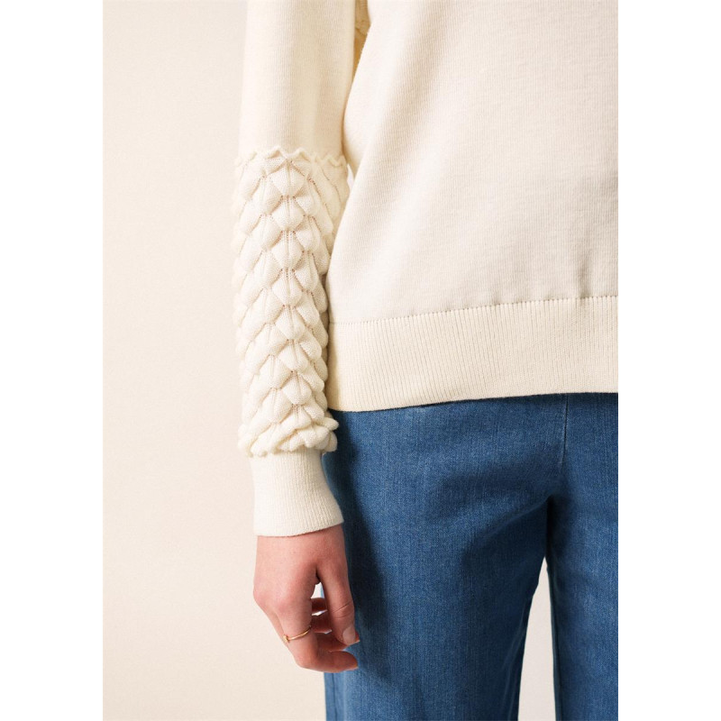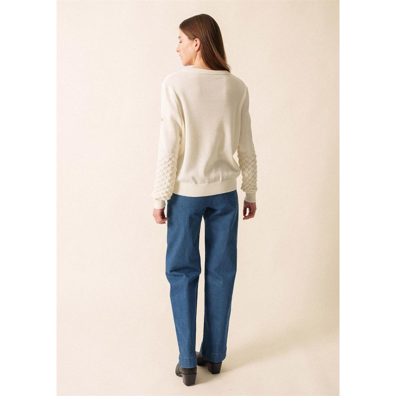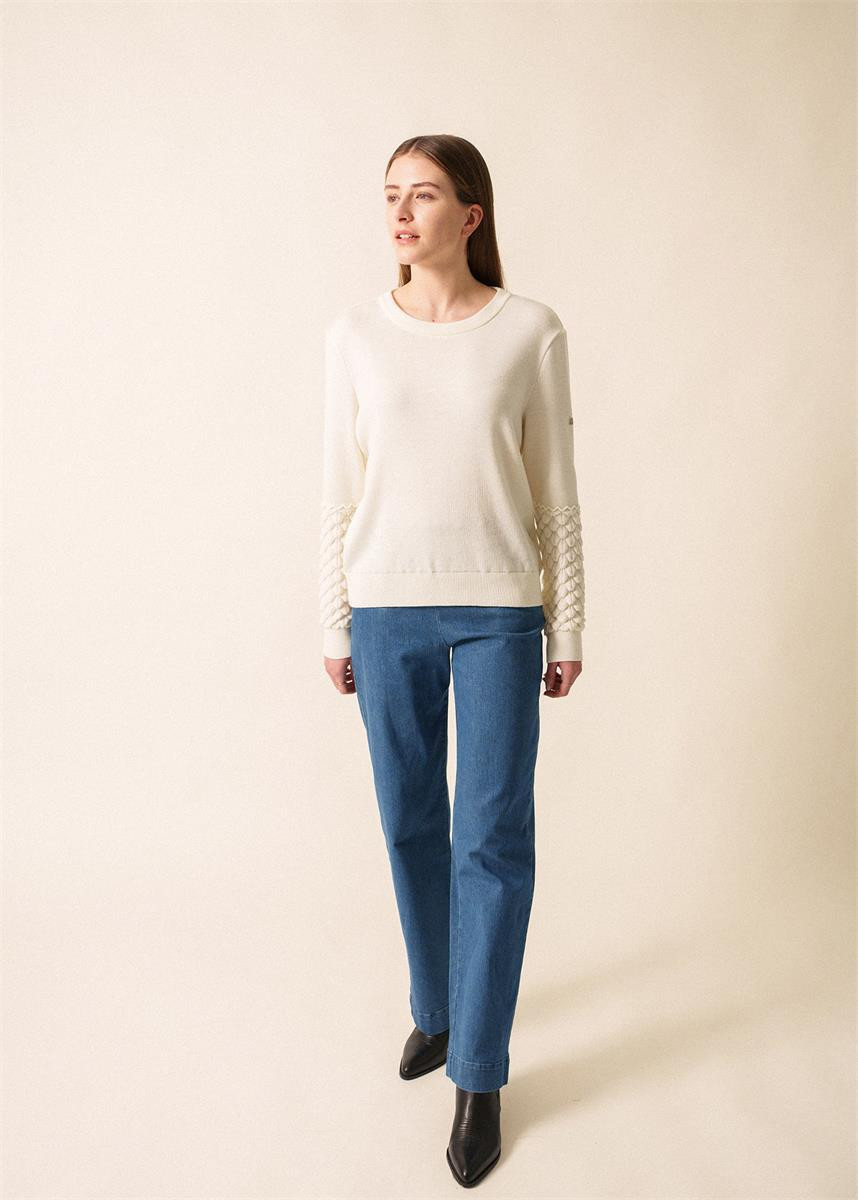 Le Pull Cluses, fabriqué en jersey de laine dans nos ateliers de Saint-James, se distingue par son col délicatement remaillé et ses finitions en bord-côte au bas des manches et du corps. Ses manches, agrémentées d'un motif en relief, apportent une touche unique et créative. Conçu avec le même fil que notre légendaire pull marin Marée, ce modèle s'inscrit parfaitement dans la collection, aux côtés de la robe et de l'écharpe Cluses.