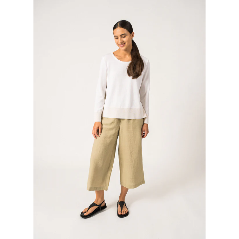 e jersey en 100% LAINE séduit par sa douceur naturelle et son confort, parfait pour accompagner les journées un peu fraîches. Son col rond lui donne une allure classique et intemporelle, tandis que sa coupe ajustée apporte juste ce qu’il faut d’élégance. Sa maille marine, fine et délicate, offre un tombé fluide et soigné.