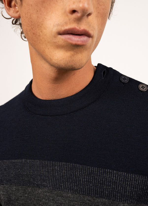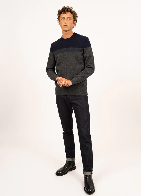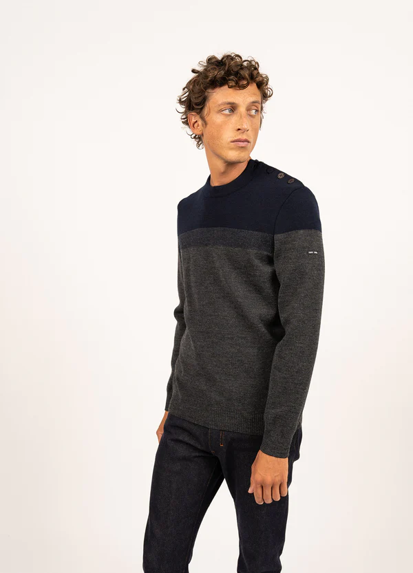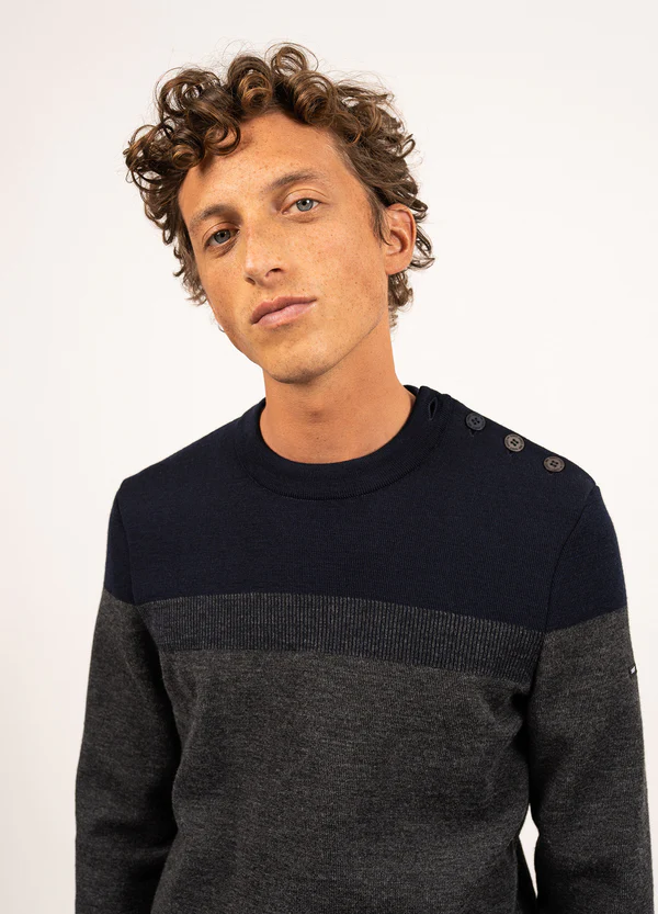 Le modèle Aquitaine garde la même forme que le pull marin Bretagne mais en plus confortable.
