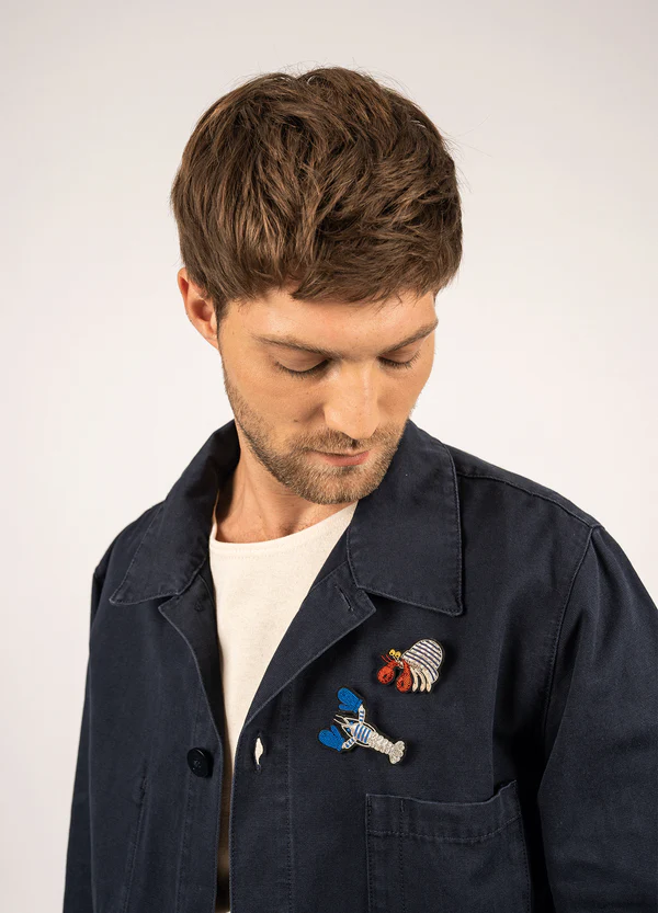 Décalé et original, ce homard restera bien au chaud peu importe la saison avec sa paire de gants bleus ! Brodée à la main par Macon & Lesquoy, cette broche est parfaite pour ajouter un peu de folie et de style à vos tenues.