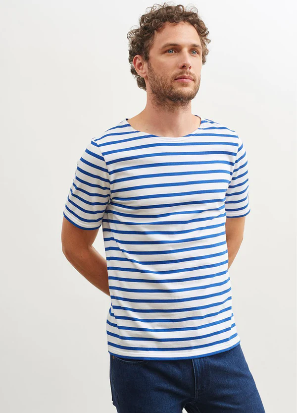Estivale avec ses manches courtes, la marinière Levant Modern a une connotation balnéaire qui rappelle également que, lors de son institution militaire, il arrivait fréquemment que les marins coupent eux même les manches de leur marinière pour être plus à l’aise.