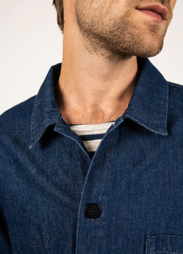 A la croisée du bleu de travail et de la vareuse, la veste sirocco souligne avec authenticité l'héritage marin de notre maison. Avec sa composition 100% coton elle assure un confort et elle est idéale pour la mi-saison ! Elle a un col polo ainsi qu'une poche poitrine. Elle possède également des poches intérieurs plaquées pour pouvoir tout transporter.