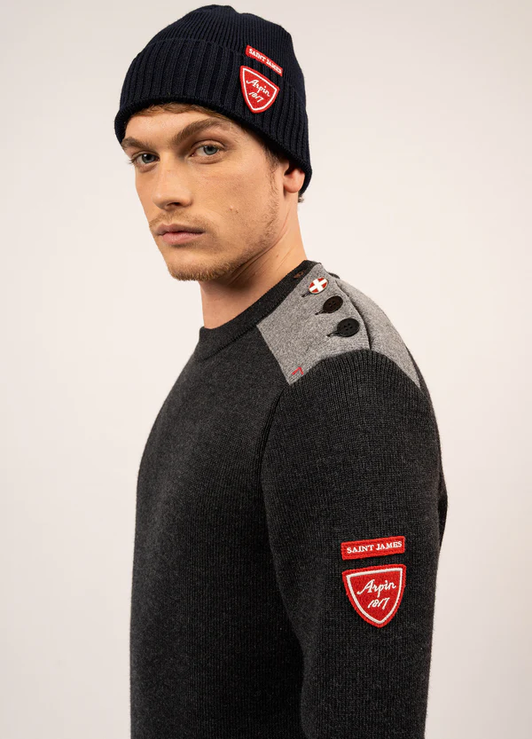 Né de la collaboration entre SAINT JAMES et Arpin 1817, le pull Moraine Arpin reflète les valeurs communes à nos deux univers : des produits de qualité, en laine, créés et fabriqués dans le respect de nos employés, fournisseurs et clients.