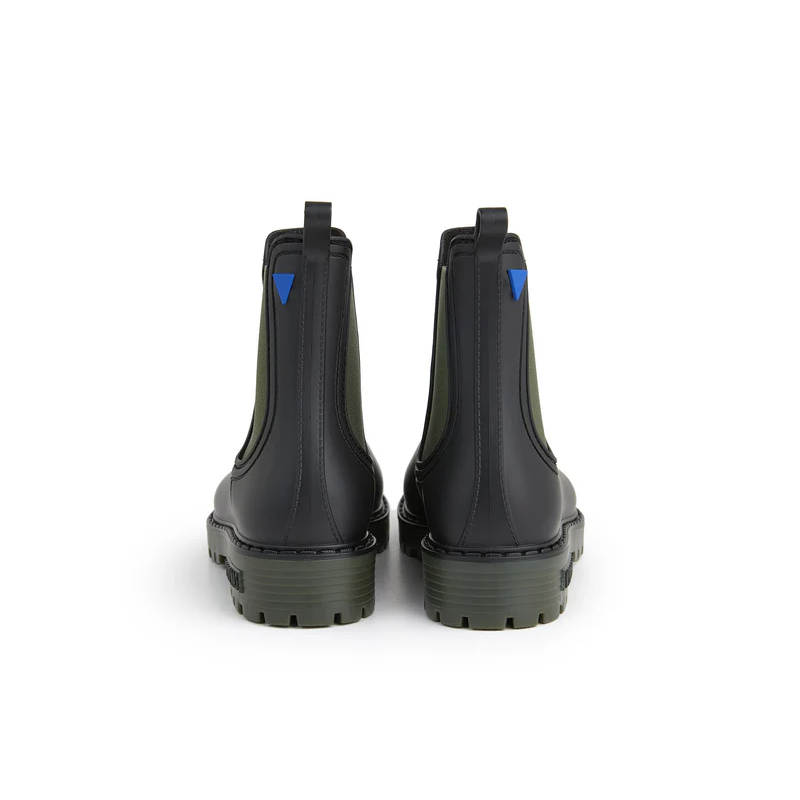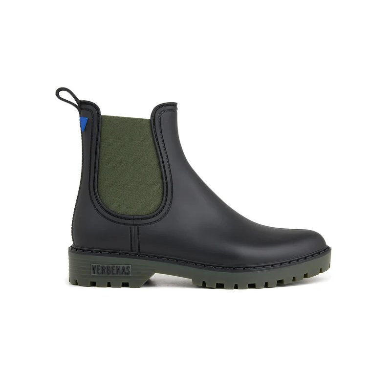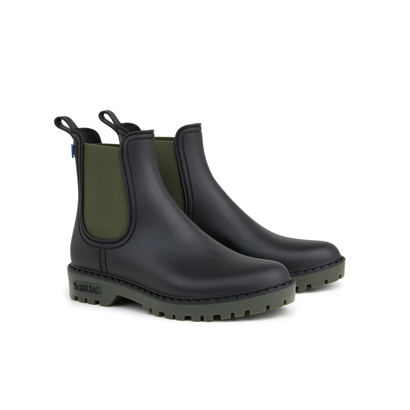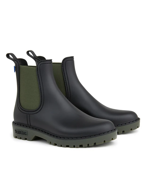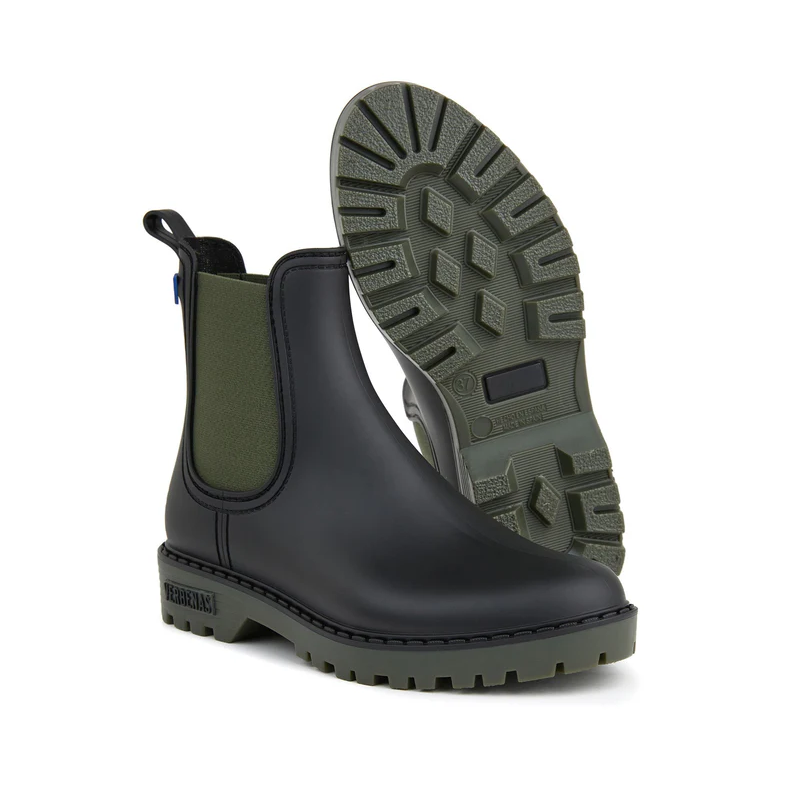 Bottes d'eau Gaudí Mate en noir et kaki. Composées d'une tige synthétique, d'une doublure et d'une semelle en textile et d'une semelle en caoutchouc. Hauteur de la tige : 14 cm. Fabriquées en Espagne, avec des combinaisons de couleurs et une semelle ton sur ton.