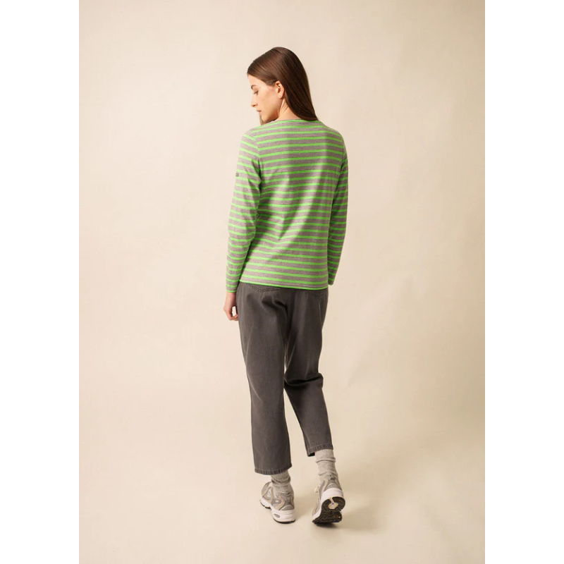 Découvrez la marinière Minquidame, la déclinaison féminine et moderne de notre iconique marinière Minquiers. Conçue dans un coton peigné de qualité, cette pièce allie une légèreté remarquable à un confort optimal, idéale pour accompagner toutes vos journées. Ses rayures indémodables, véritable signature de notre style, apportent une touche de casual chic qui se prête aussi bien à une tenue décontractée qu'à une allure plus habillée. Polyvalente et élégante, cette marinière est une pièce intemporelle, qui puise toute sa force dans notre riche héritage marin. À la fois classique et contemporaine, la marinière Minquidame se pose comme un indispensable du dressing féminin, parfait pour celles qui aiment conjuguer tradition et modernité.