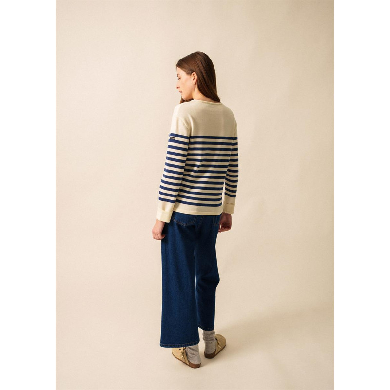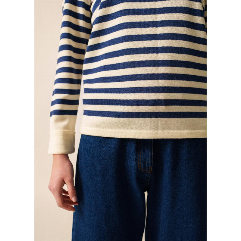 Pensé pour celles qui aiment conjuguer style iconique et confort au quotidien, le pull Ecrins revisite la rayure façon douceur.
