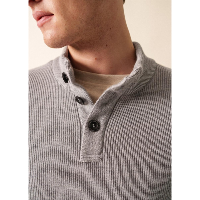 Conçu pour allier style et chaleur, ce pull en laine (100%) se distingue par sa côte anglaise généreuse et texturée. Son col montant boutonné avec motifs chevrons apporte une touche graphique et élégante, tout en assurant une bonne protection contre le froid. Les bord-côte en bas de manche et bas de corps renforcent l’allure structurée du modèle, tandis que sa coupe confort garantit une aisance au quotidien, sans compromis sur le style.