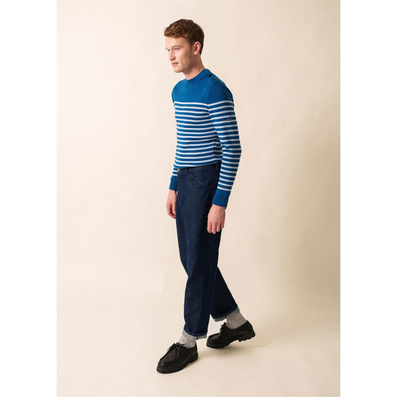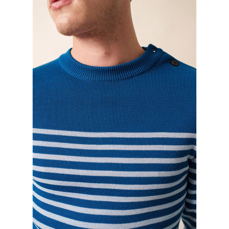 Pull marin rayé en Laine Rochefort lac/ciel - Saint James