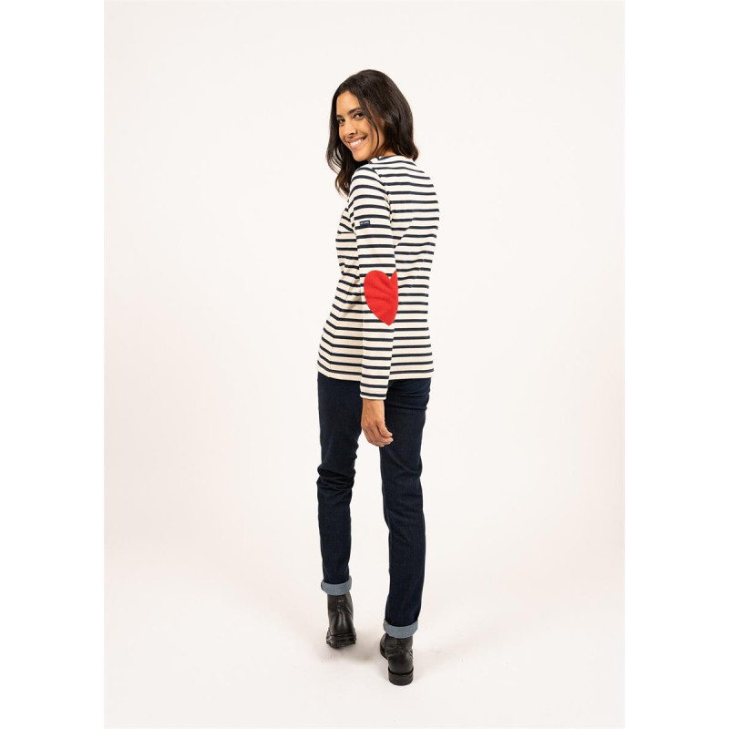 Réalisée dans nos ateliers à partir d’un jersey de coton lourd, la Marinière Vaujany s’inspire fidèlement de notre marinière iconique, tout en affirmant sa singularité grâce à ses coudières en forme de cœur. On apprécie également les détails contrastés rouges subtilement placés à l’intérieur du col et en bas de manches. Une pièce parfaite pour les amoureux de nos rayures.