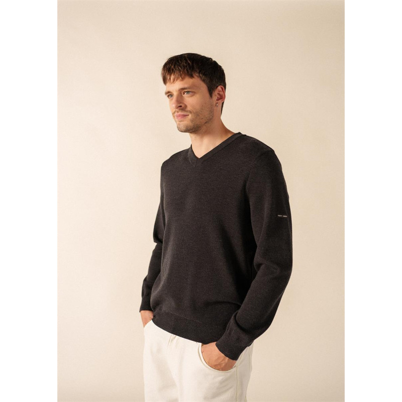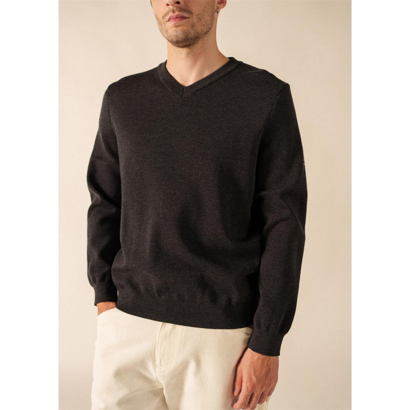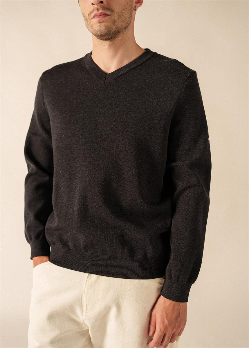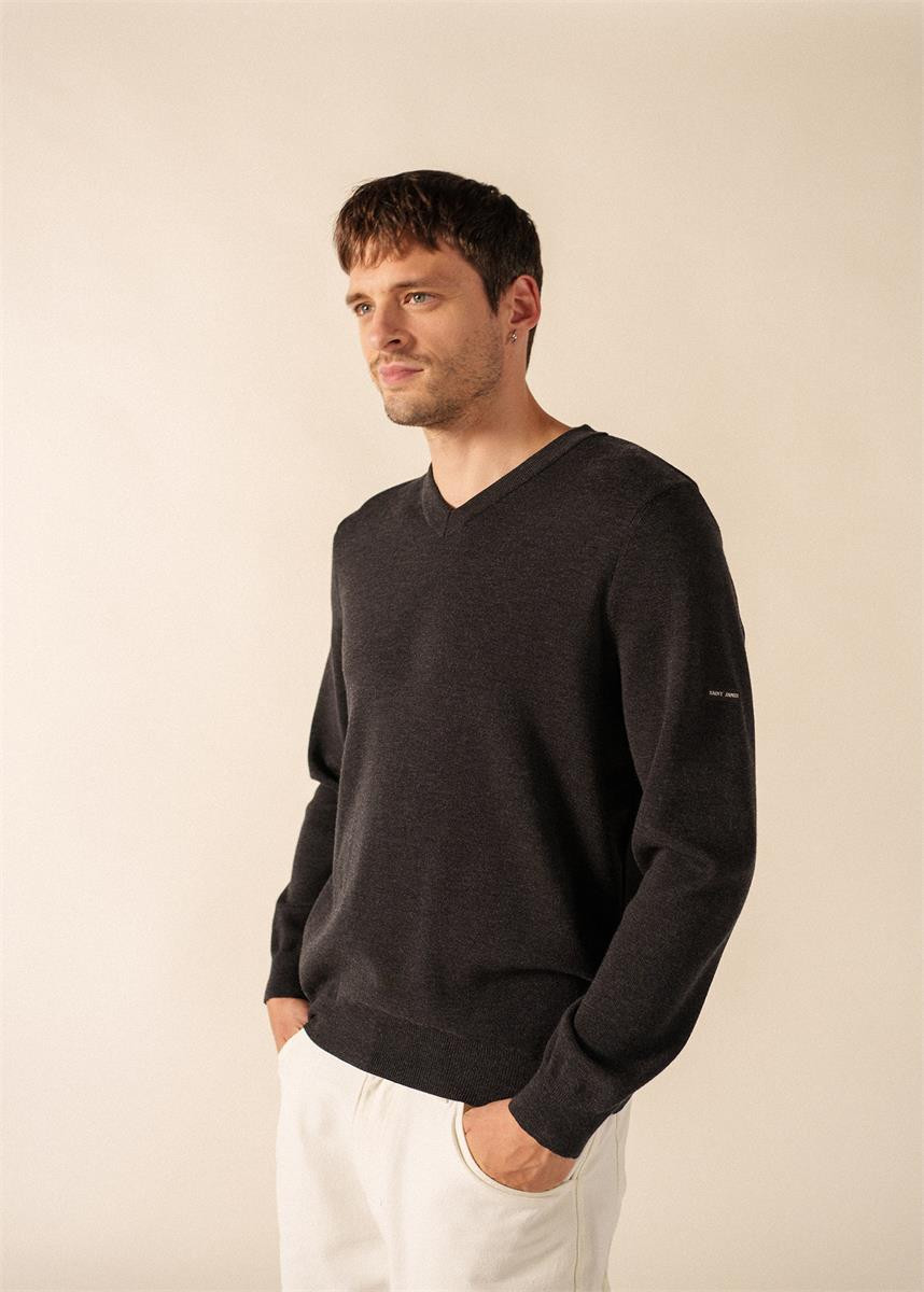 Pull en Laine col V Cuirassé anthracite - Saint James