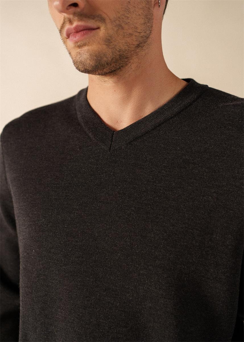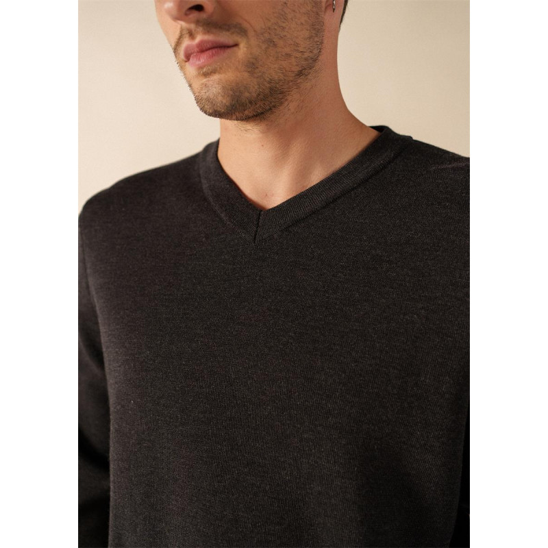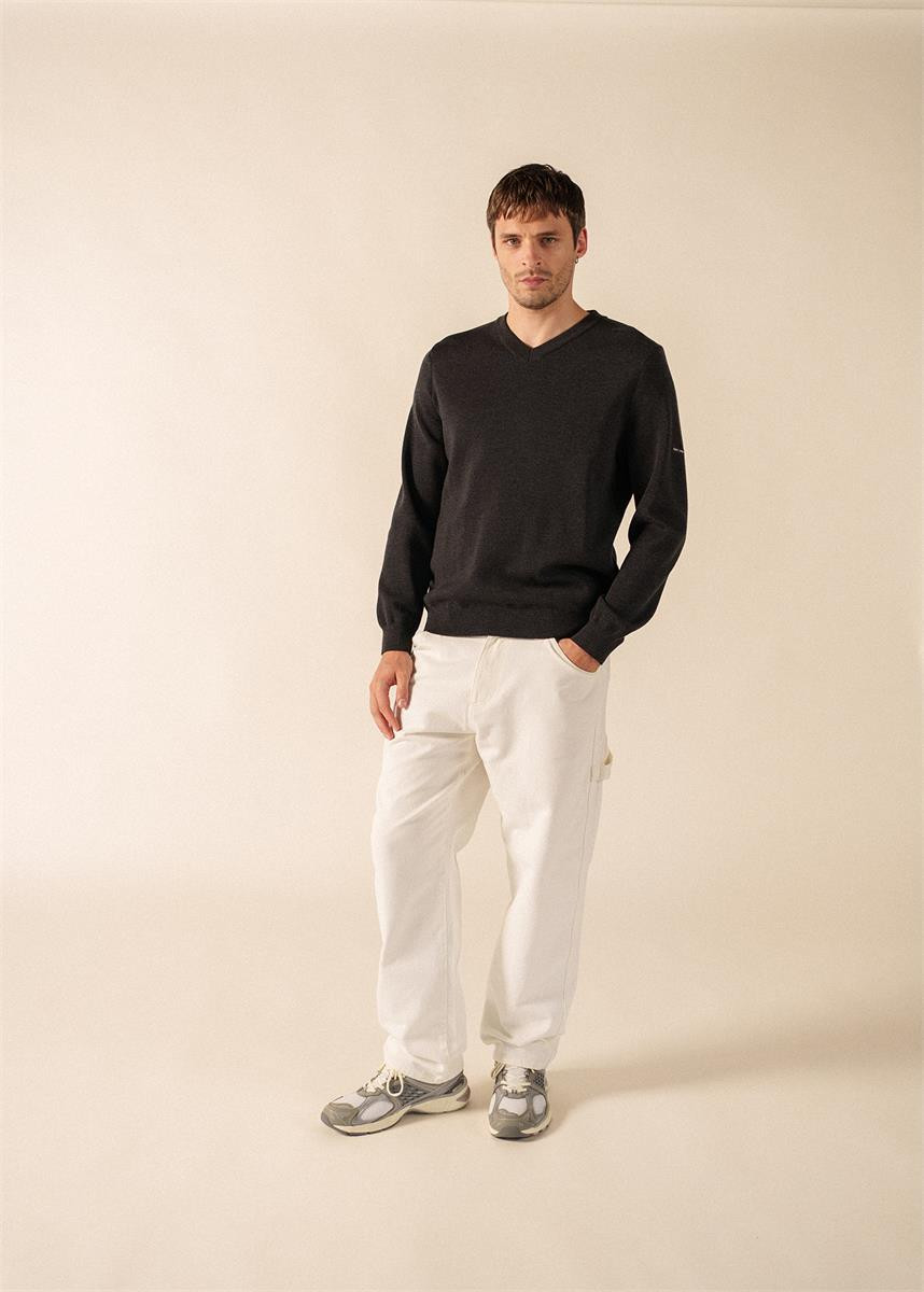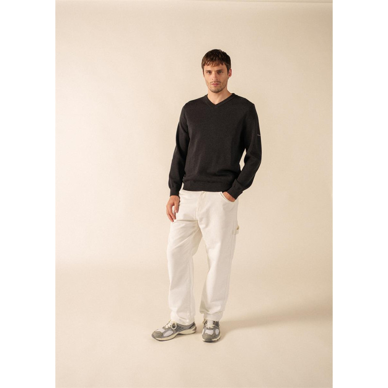 Pull en Laine col V Cuirassé anthracite - Saint James