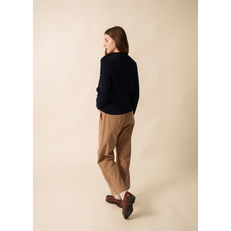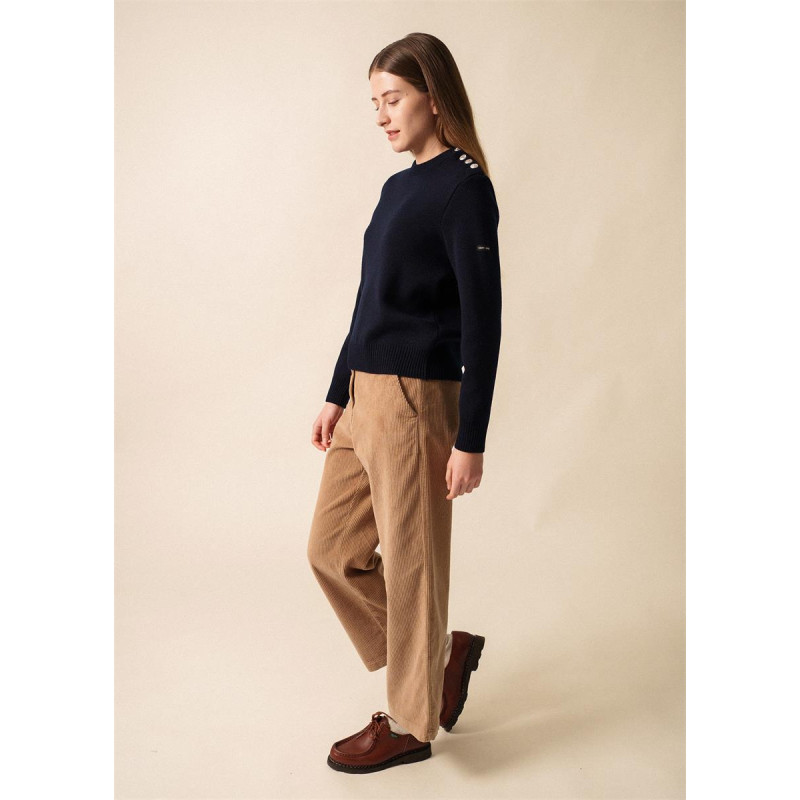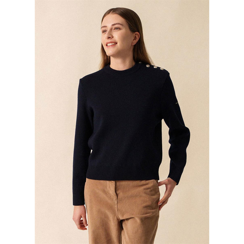 Inspiré par les embruns de l’océan et la lumière douce des matins d’automne, le pull marin Cancale revisite un grand classique du vestiaire en version féminine. Il est confectionné avec le fil emblématique de notre modèle iconique Marée, reconnu pour sa qualité et son confort. Tricoté en côte 1x1, il offre une maille souple, dense et chaude, parfaite pour affronter les fraîcheurs de saison. Ce modèle se distingue par ses détails soignés, notamment ses boutons ancre argentés subtilement disposés sur l’épaule, clin d’œil au patrimoine maritime de SAINT JAMES. À la fois authentique et élégant, ce pull conjugue tradition et modernité avec une belle justesse.