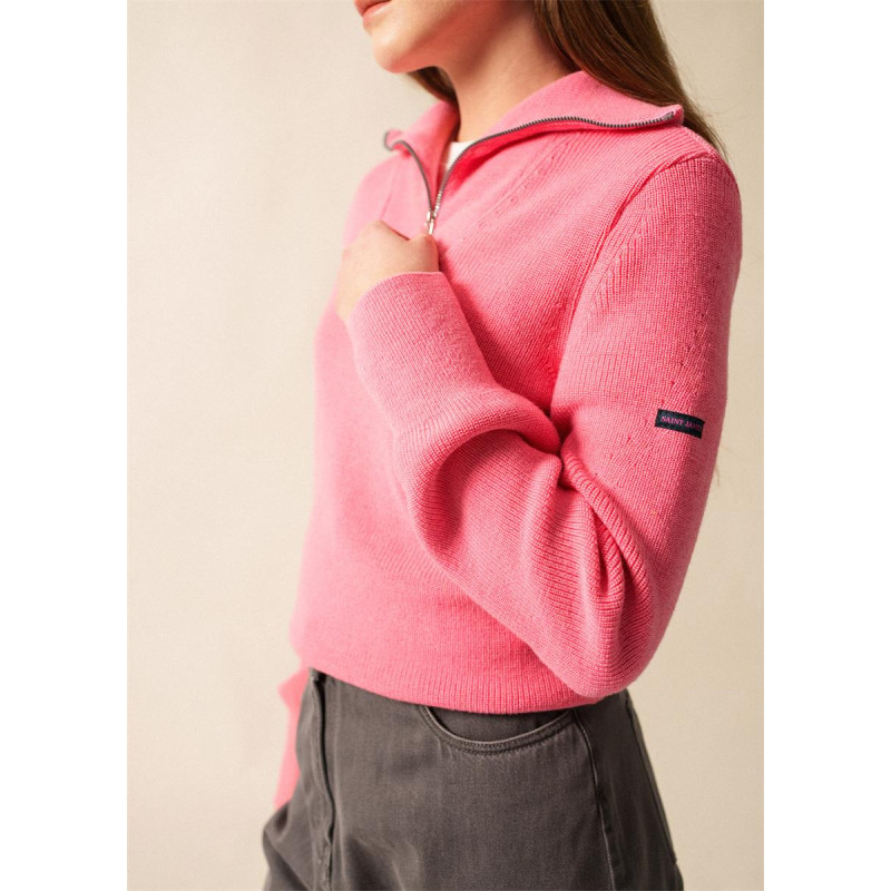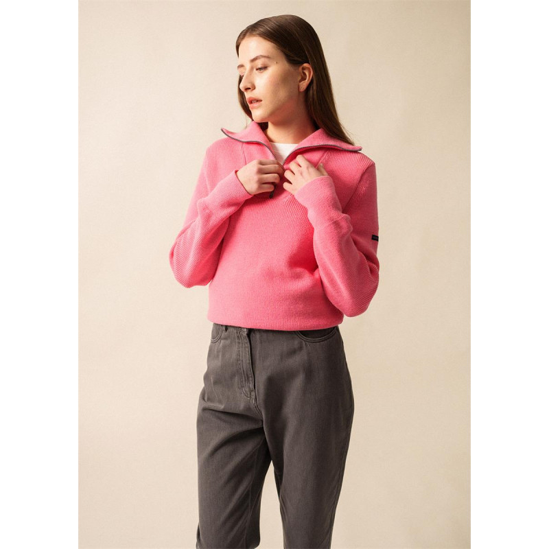 Ce pull en laine (100%) séduit par sa maille perlée au relief discret et son col camionneur zippé, à la fois pratique et structurant. Doté de manches longues, de bords côtes au niveau du corps et des poignets, il présente une coupe droite confortable. Le logo SAINT JAMES apposé sur la manche gauche signe cette pièce avec discrétion et authenticité.