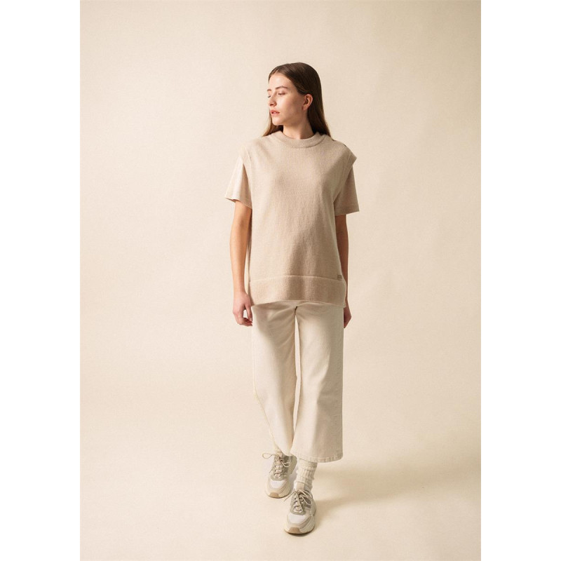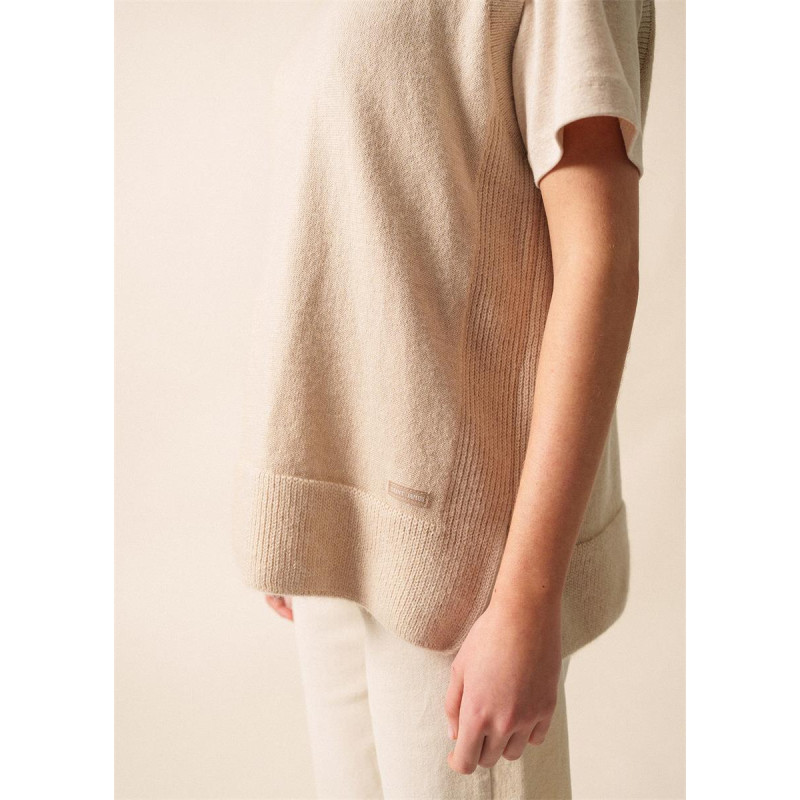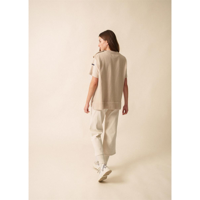 Pull sans manche en jersey et côtes, doté d’un boutonnage à l’épaule gauche pour plus de style. Ses bords côte aux emmanchures et au bas du vêtement assurent une finition soignée, complétée par des fentes côtés pour une liberté de mouvement optimale. Sa coupe droite élégante est sublimée par le logo SAINT JAMES discrètement placé en bas. Confectionné dans un mélange de mohair (48%), polyacrylique (36%), polyamide (9%) et polyester (7%), ce modèle allie confort et authenticité.