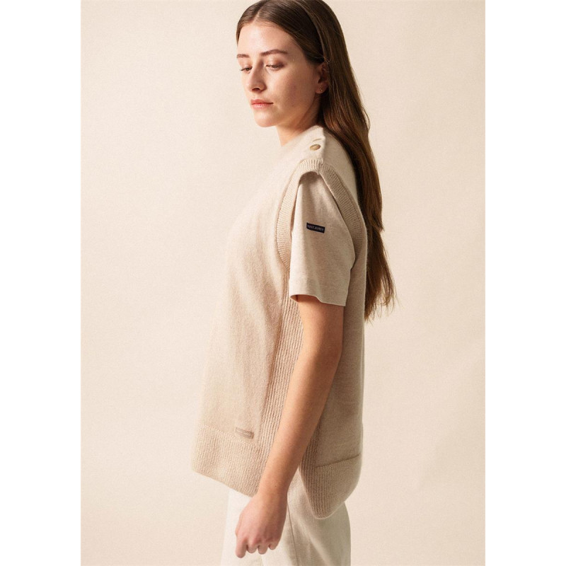 Découvrez la chaleureuse douceur de notre pull sans manche La Clusaz, conçu en jersey de mohair. Les finitions en bord côte aux emmanchures, au col et à la base garantissent une structure raffinée et un excellent maintien. Les boutons décoratifs sur l’épaule ajoutent une touche d’originalité unique à cette pièce. Fabriqué en France dans les ateliers historiques de Saint-James, ce pull sans manche incarne l’excellence du savoir-faire français et la fidélité à une tradition textile authentique.