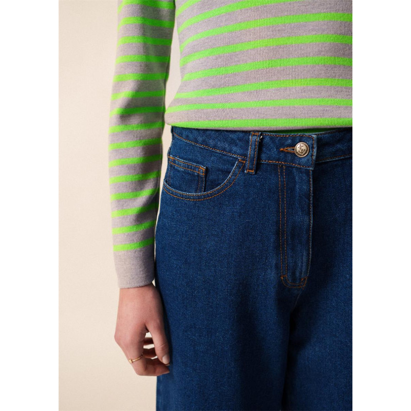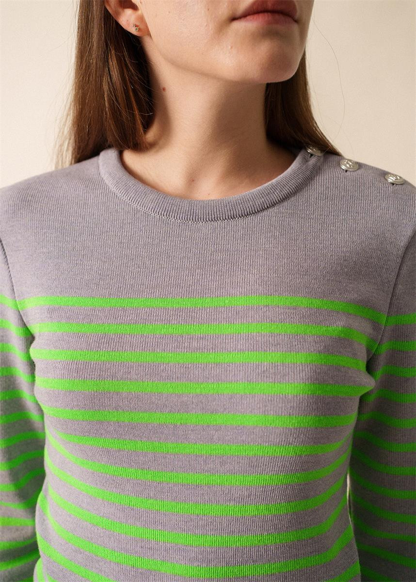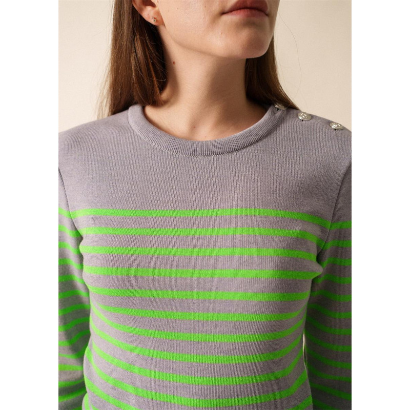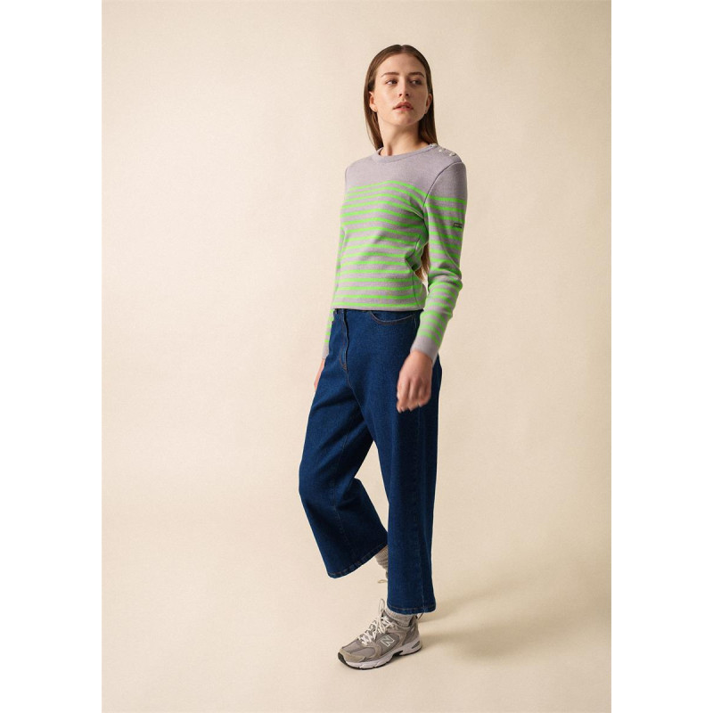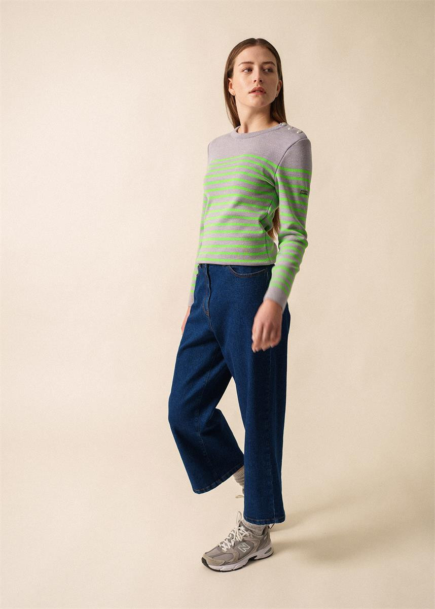Le Pull marin rayé Marée Fluo incarne l’esprit marin revisité avec une touche de modernité. Tricoté dans nos Ateliers normands, il allie tradition et audace. Sa coupe ajustée et son col rond remaillé assurent confort et élégance. Les rayures fluo sur fond Perle Chine apportent une note dynamique et contemporaine. Un vêtement essentiel pour celles qui souhaitent allier style intemporel et originalité.