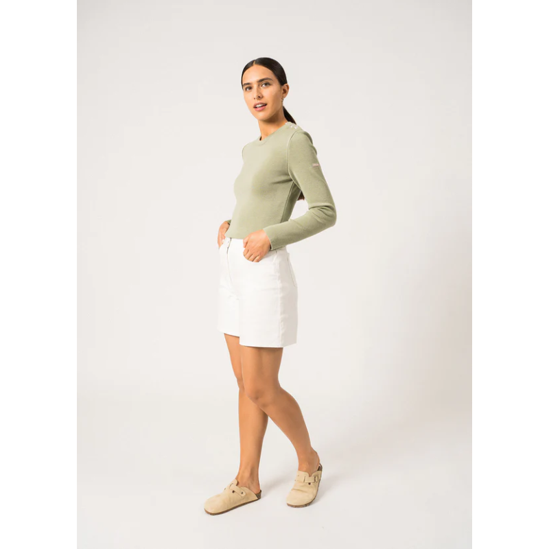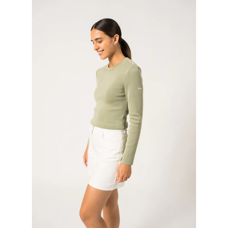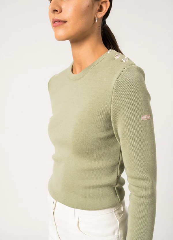 Pièce iconique du vestiaire féminin SAINT JAMES, le pull Marée revisite avec finesse l’allure du pull marin traditionnel. Confectionné dans nos ateliers en laine douce et fine, il offre un équilibre idéal entre confort, chaleur et élégance. Fidèle à l’esprit intemporel des modèles marins, il reprend les codes essentiels : col rond remaillé, tricotage en côte 1x1, boutonnage à l’épaule, laine vierge 100%, et coupe près du corps, garantissant chaleur et praticité. Résolument versatile, ce pull deviendra l’allié parfait de toutes vos tenues, qu’elles soient habillées, casual, classiques ou originales.