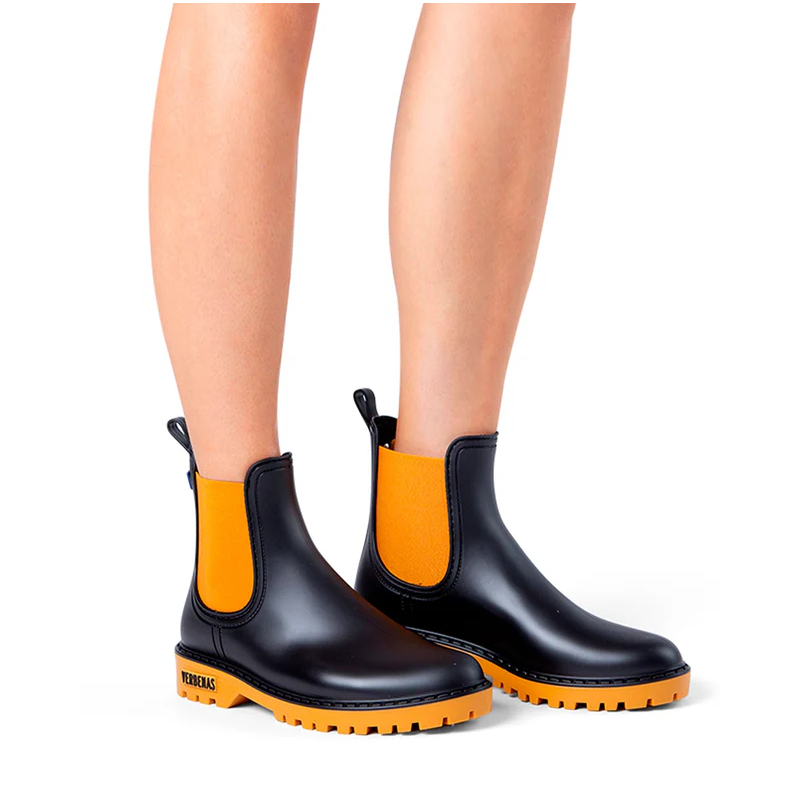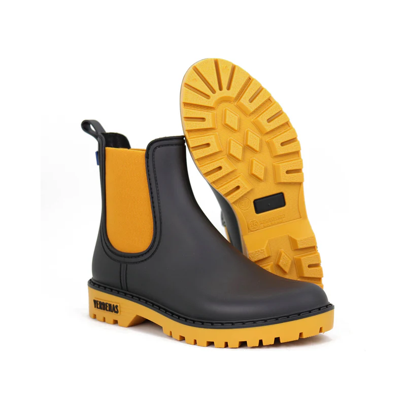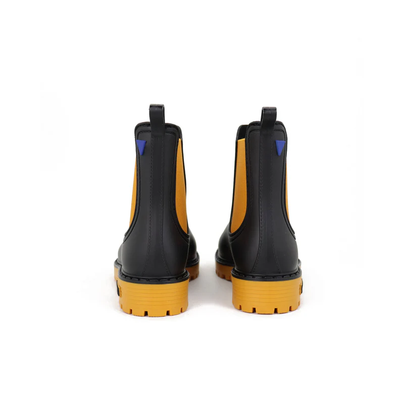 Les Bottes de Pluie Gaudi Mate Negro‑Ocre marient à la perfection style urbain et fonctionnalité. Conçues en PVC mat de haute qualité, elles offrent une finition moderne et une excellente protection contre l’humidité. La tige de 14 cm assure une protection suffisante tout en restant pratique pour un usage quotidien. Le design s’inspire des bottes Chelsea classiques, avec une touche contemporaine grâce au contraste de couleur noir/ocre.
